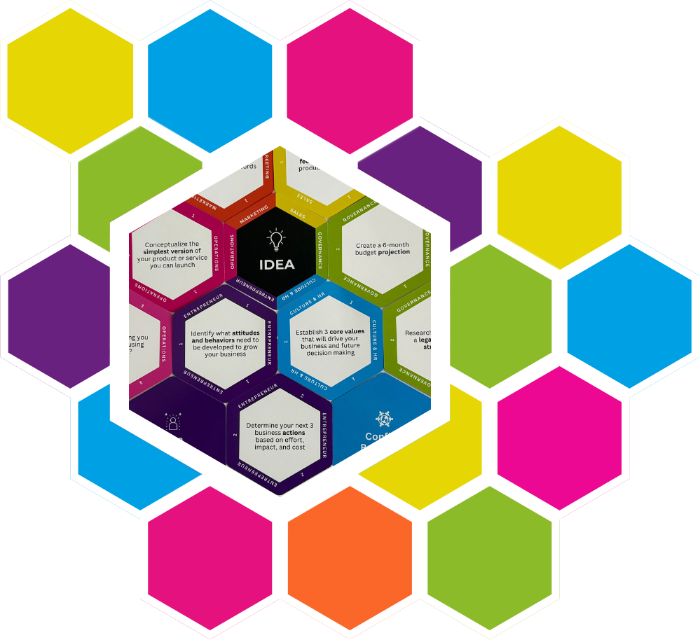 The HIVE Deck was developed through a collaborative process that combined facilitation expertise, experience in behavior and decision-making, and user testing with real business owners. Through that work, the deck evolved into a structured system that consistently delivers clarity, direction, and meaningful action.